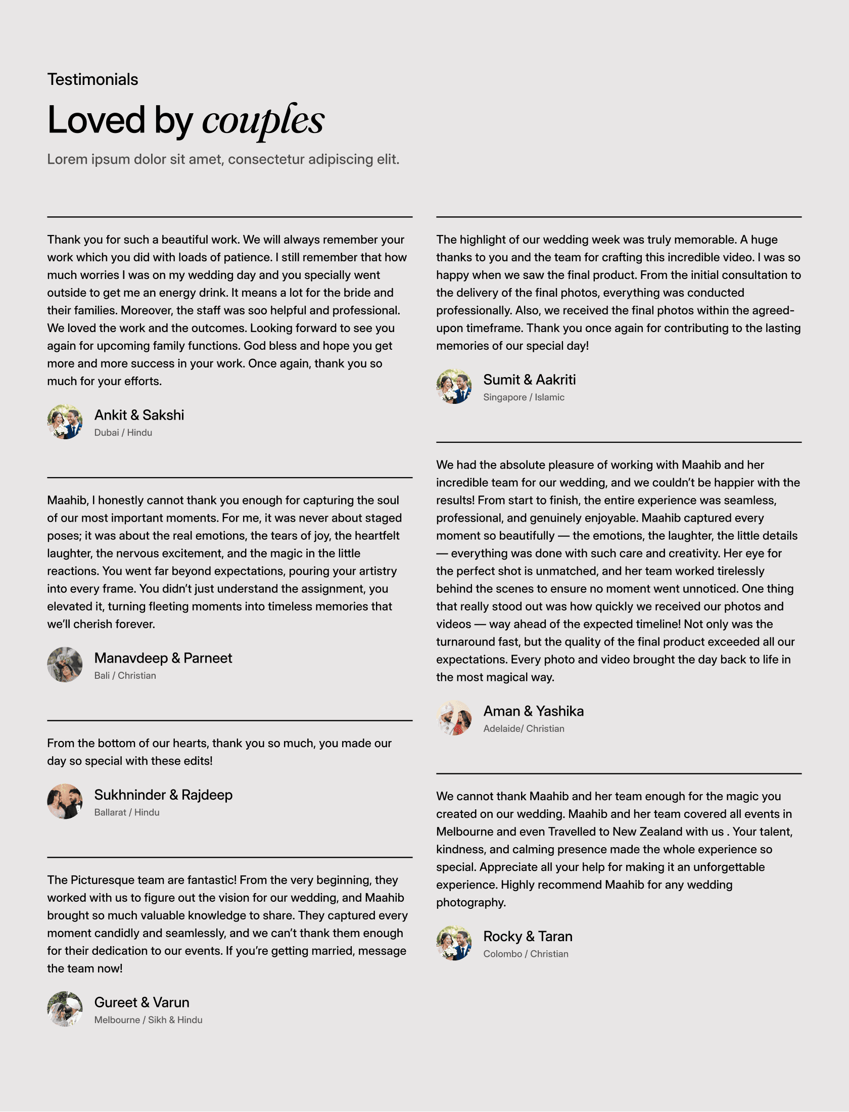 We specialise in working with wedding and event vendors who rely on referrals and reputation, and want a website that reflects the quality of their work. We understand the South Asian wedding market — the pace, the expectations, and the importance of presentation.